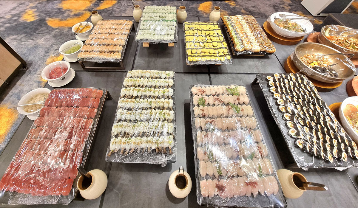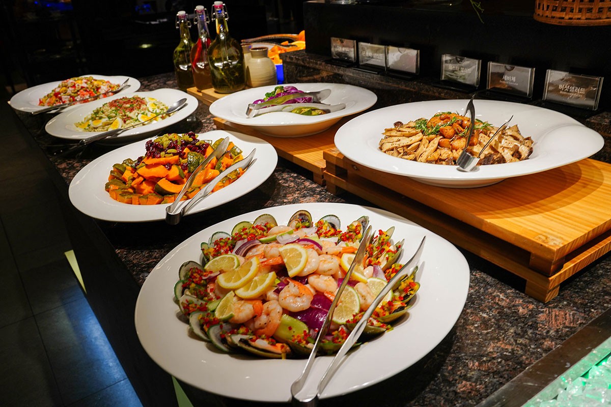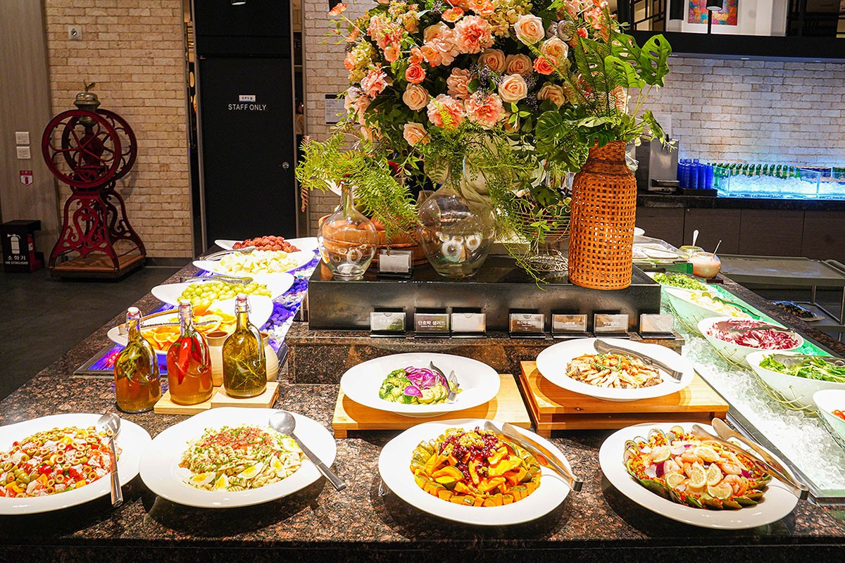 Menu Guide 메뉴 안내 시그니처 뷔페 루시아 뷔페 코스 메뉴 단품 메뉴 핑거 푸드 시그니처 뷔페 Signature Buffet Salad 샐러드 양상추 샐러드 베이비 믹스 베지터블 훈제 연어 샐러드 케이준 치킨 샐러드 방울 토마토 단호박 샐러드 바나나 샐러드 황도 과일 샐러드 열대 과일 믹스 토마토 카프레제 또띠아 롤 버섯 구이 양장피 해산물 샐러드 파르펠레 샐러드 Hot Dish 핫 디쉬 한방 갈비찜 함박 스테이크 마늘 은행 구이 훈제 오리 구이 과일 탕수육 중화풍 볶음밥 도가니탕 오늘의 국 1종 베이컨 밤말이 연어 아가미 구이 닭 날개 구이 유산슬 유린기 불족발 감바스 뇨끼파스타 치킨타코 풀드포크 Sashimi 즉석회 한치회 돌문어 숙회 빅아이 참치 역돔 멍게 회 학꽁치 회 팡가시우스(민물 메기) 피골뱅이 자숙중하새우 그린홍합 연어회 홍게 섹션 물회 Korean Food 한식 해파리 냉채 낙지 무침 견과류 정과 육회 무쌈말이 배추 김치 겉절이 김치 물 김치 꽃게 무침 삼채 꼬시래기 무침 홍어 회무침 꼬막무침 가오리찜 젖갈 3종 Sushi & Roll 초밥&캘리포니아롤 참치 초밥 새우 초밥 가리비 초밥 크래미 초밥 한치 초밥 참치 캘리포니아롤 새싹채소 캘리포니아롤 연어 캘리포니아롤 캘리포니아롤 후리가게 타코와사비 하몽햄 유부초밥 3종 Rice 밥 흰밥 오곡밥 Soup 오늘의 국 호박죽 양송이 스프 steamed dish 고기만두 김치만두 새우 하가우 웨딩 샤오마이 Dissert 디저트 베이커리 16종 떡 5종 계절과일 4종 김밥2종 꼬마김밥 원조김밥 Noodles 잔치국수 모밀국수 Yogurt& Cereal Live corner 즉석 일품 요리 팔보채 볶음 우동 깐쇼 새우 즉석 코너 라자니아 피자 토마토 스파게티 크림 스파게티 봉골레 스파게티 콤비네이션 피자 고르곤졸라 피자 불고기 피자 바베큐 소시지 구이 닭꼬치 비프스테이크 즉석 샤브샤브 코너 베트남 쌀국수 돈꼬츠 라멘 Beverage 음료 수정과 식혜 커피 디스펜서기 쥬스 3종 Fried food 튀김 새우튀김 고구마튀김 단호박튀김 김말이튀김 Pan-fried 전 통태전 김치장떡 호박전 Cold dish 콜드 5종 토마토 카프레제 또띠아롤 버섯구이 양장피 단호박찜 삼색푸딩 닭가슴살 냉채 ※ 상기 메뉴는 계절에 따라 변경 될 수 있습니다. 루시아뷔페 Lucia Buffet Salad 샐러드 양상추 샐러드 단호박 샐러드 토마토 열대 과일 꽃맛살 Hot Dish 핫 디쉬 탕수육 호박죽 버팔로윙 유산슬 베이컨 밤말이 갈비찜 훈제오리구이 순살양념치킨 깐쇼새우 Korean Food 한식 영양밥 해파리냉채 육회 배추김치 궁중잡채 꽃게 무침 모듬정과 Dissert 디저트 모듬과일 3종 모듬케잌 3종 모듬쿠키 3종 모듬떡 4종 커피 식혜 또는 쥬스 Cold dish 콜드 토마토 카프레제 그린 홍합 칠리소스 훈제 족발 훈제 연어 모듬 참치회 김밥 모듬롤 2종 모듬초밥 3종 ※ 상기 메뉴는 계절에 따라 변경 될 수 있습니다. Lucia Buffet Movie 루시아 뷔페 영상 Lucia Buffet Gallery 루시아 뷔페 갤러리 갈비탕 코스 Galbitang Course 양식 코스 Western Course 퓨전 한정식 코스 Fusion Korean Course 도시락 세트 Lunch Box Set 모듬 치즈 세트 Cheese Set 갈비탕 정식 Galbitang set 해밀시아 정찬 Haemilsia Set 핑거 푸드 Finger Food 다과 세트 Refreshments Set