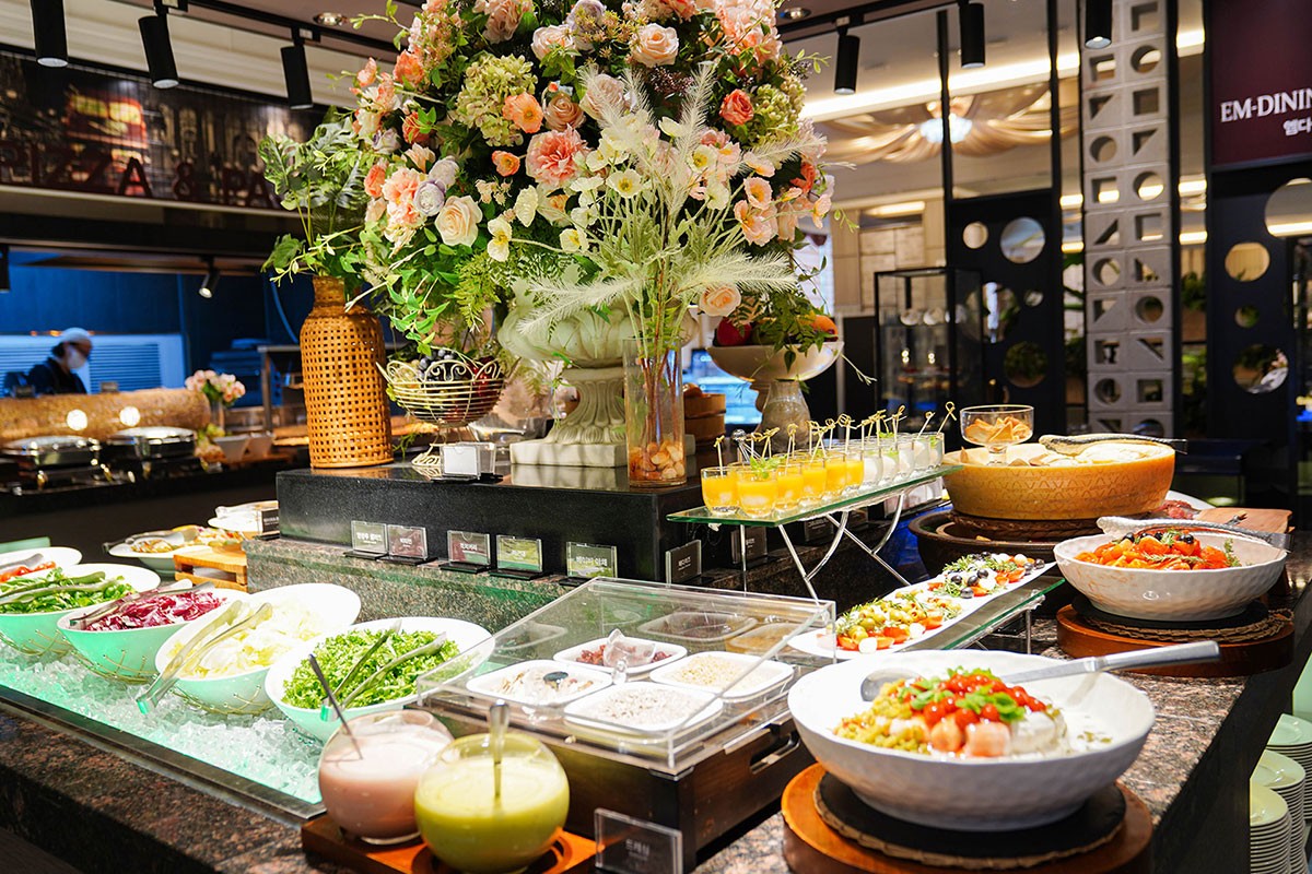 Cuisine 연회 메뉴 미식의 향연, 호평을 받는 맛있는 요리들 미식의 즐거움 역시 빼놓을 수 없는 엠블던호텔의 매력입니다. 고객들로부터 호평을 받는 맛있는 요리들로 눈과 입을 동시에 만족시켜 드립니다. 연회 메뉴 Cuisine 고객들로부터 호평을 받는 엠블던호텔의 맛있는 요리 연회 예약문의 Special Feature 최고 수준의 쉐프들로 구성되어 엄선된 식자재에 대한 고집과 맛을 통해고객님께 행복을 전해 드립니다.연회에 풍미를 더해드릴 정성스러운 요리,최고의 만찬을 경험할 수 있는 곳. 엠블던호텔입니다. Floor5F