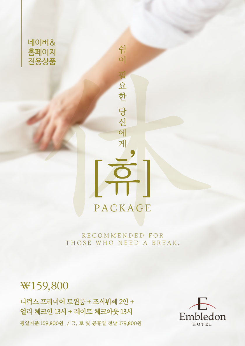 패키지 상세 혜택 휴패키지 쉼이 필요한 당신에게 편안한 휴식과 재충전을 패키지 기간 : 2024/08/30 ~ 계속 TEL : 031-413-2222 패키지 혜택 네이버 & 홈페이지 전용 상품[휴 패키지]디럭스 프리미어 트윈룸 + 조식뷔페 2인 +얼리 체크인 13시 + 레이트 체크아웃 13시★ 평일기준 159,800원★ 금, 토 및 공휴일 전날 176,800원패키지 문의전화 031-413-2222 패키지 기간 2024/08/30 ~ 계속 패키지 예약 목록 이전 패키지 메리미 패키지 다음 패키지 Camping in the train