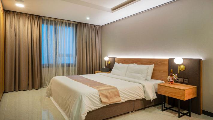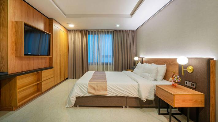 Information 체크 인 15:00 체크 아웃 11:00 기준 인원 4인, 최대 5인 / 1인 추가시 16,500원 (1인 어미니티 추가 제공) 객실 구성 침실1, 욕실3, 주방1, 거실2 침대 타입 King Size 1600*2000㎜ 1EASingle 1100*2000㎜ 3EA 객실 면적 124.64m²